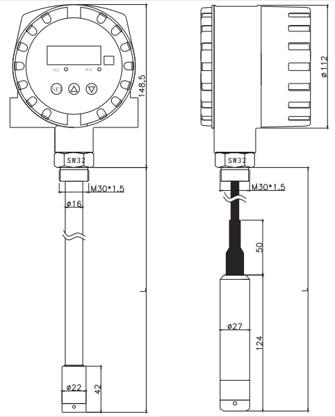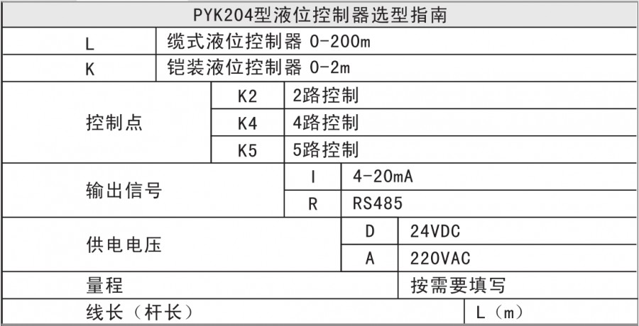 The PYK204 series liquid level controller is an intelligent digital liquid level control product that integrates liquid level measurement, display, output and control. Suitable for non-sealed container liquid level measurement, and can far output 4-20mA and RS485 network.