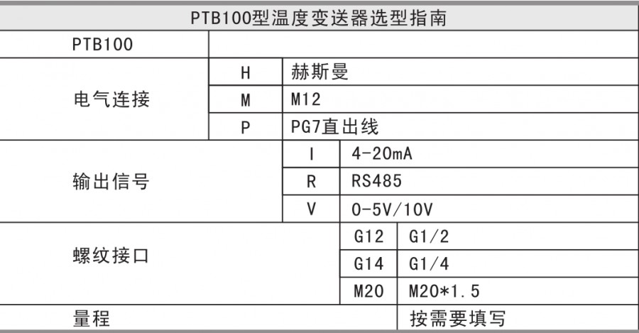 PTB100溫度變送器采用PT100做為測量元件,選用全數(shù)字電路,整體性能穩(wěn)定可靠,可進(jìn)行遠(yuǎn)距離信號傳輸。全不銹鋼結(jié)構(gòu),安裝方便。具有極高的抗干擾性和抗沖擊性。適用于石油化工、冶金、電力、水電等工業(yè)現(xiàn)場溫度的測量。