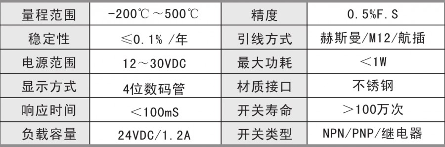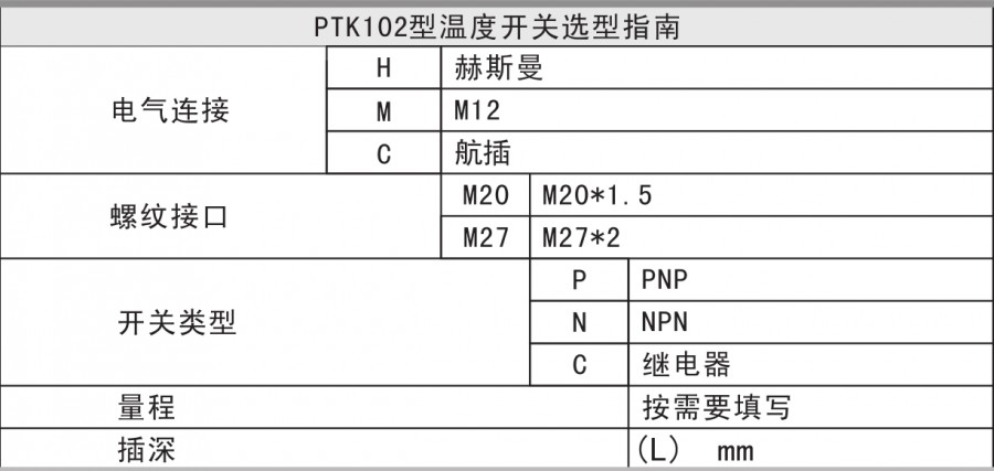 PTK102智能數(shù)字溫度開關(guān)是集溫度測量、顯示、輸出、控制于一體的智能數(shù)字溫度測控產(chǎn)品。不銹鋼接頭、高精度PT100、全數(shù)字電路板組成,顯示直觀,操作簡單,安全可靠,開關(guān)點(diǎn)現(xiàn)場設(shè)置。廣泛應(yīng)用于水電、自來水,石油、化工、機(jī)械、液壓等行業(yè),對流體介質(zhì)的溫度進(jìn)行測量和控制。